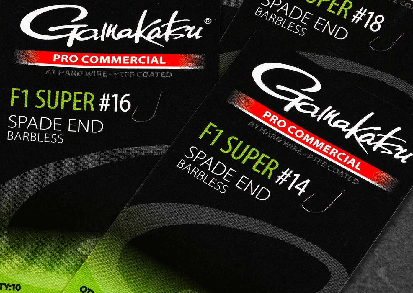 Die Pro Commercial F1 Super Spade End Hooks wurden speziell für empfindliche Futterfische an kommerziellen Angelplätzen entwickelt. Dieses spatenförmige, widerhakenlose Modell basiert auf dem berühmten Gamakatsu 7010 und wird aus A1-Draht hergestellt. Die gerade Nadelspitze, die leicht nach innen versetzt ist, bietet eine extrem hohe Hakentreue bei den misstrauischsten Fressfischen. Der dünne Draht ermöglicht eine feinfühlige Köderpräsentation, die für lebende Köder und weiche Pellets wichtig ist. Die P.T.F.E.-Beschichtung verbessert die Durchschlagskraft und hält die Spitze extrem scharf. Die F1 Super kann sowohl an der Angelrute als auch am Feeder verwendet werden, um Silvers, F1's und in der kälteren Jahreszeit sogar Karpfen zu fangen.