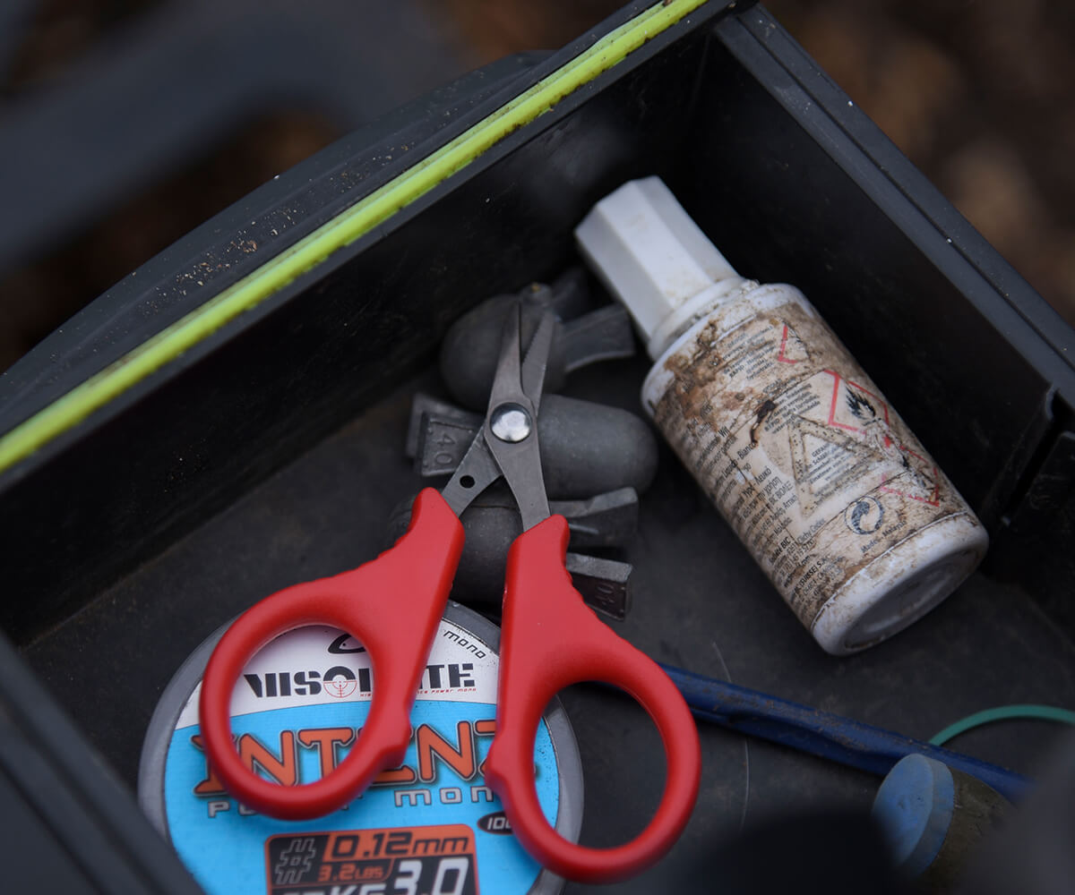 Deze schaar is ideaal voor het doorknippen van korte uiteinden van zowel gevlochten lijnen als nylon. Dankzij de fijne karteling glijdt de lijn niet weg.