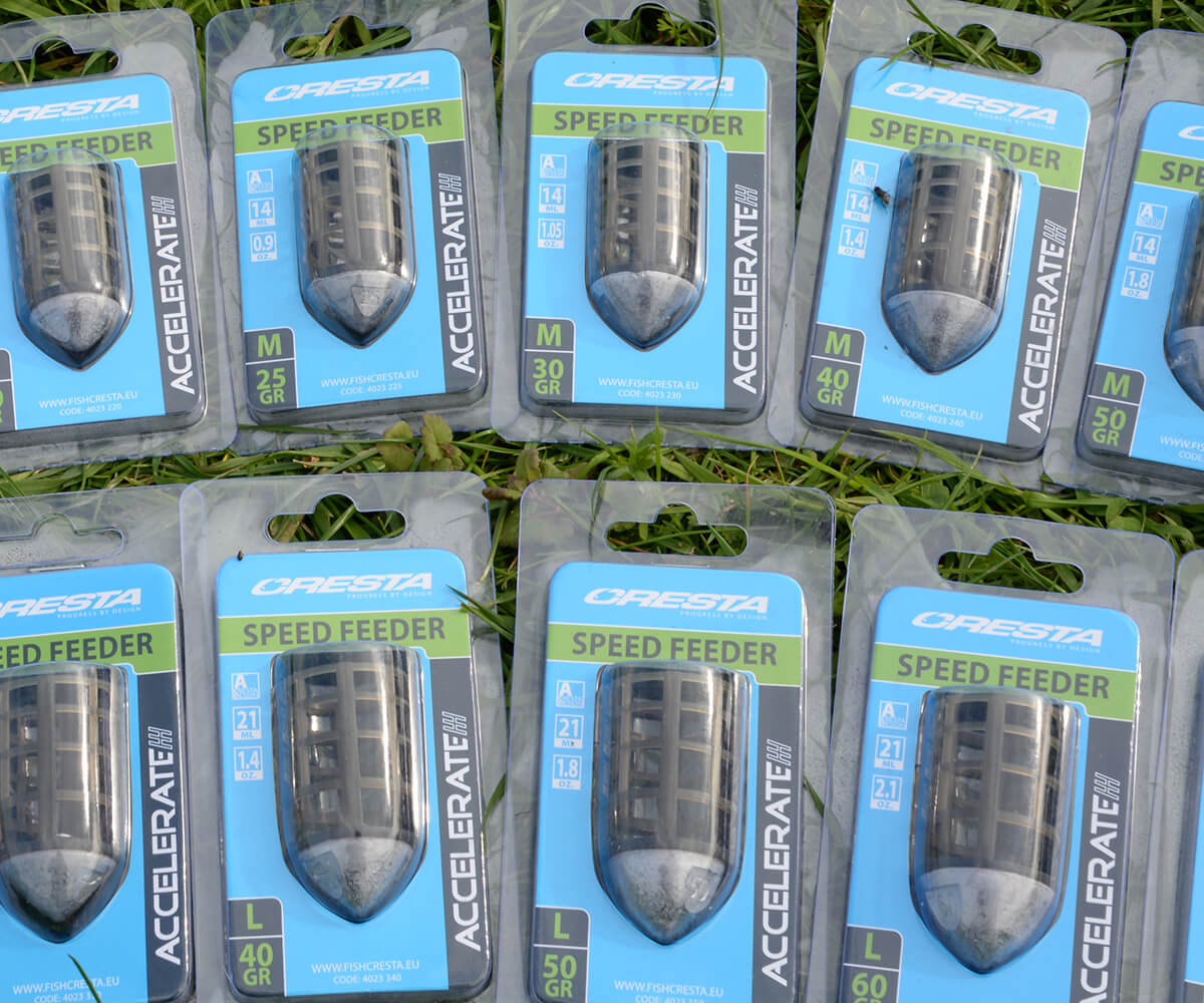 The Accelerate Speed Feeders are available in 2 different sizes with weights varying from 10g to 80g.