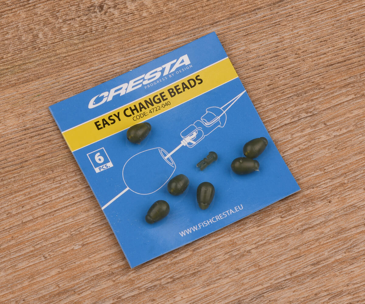 The Cresta Easy Change Beads are the perfect connection between mainline and hooklength for a running feeder set-up. The soft bead acts as a stopper for the feeder. The insert contains an opening on one side to attach the main line, the other side has a notch for hooking the hooklength. By placing the insert in the bead, the hooklength is fixed, changing or removing is easy and quick. Suitable for both method and cage feeders.
