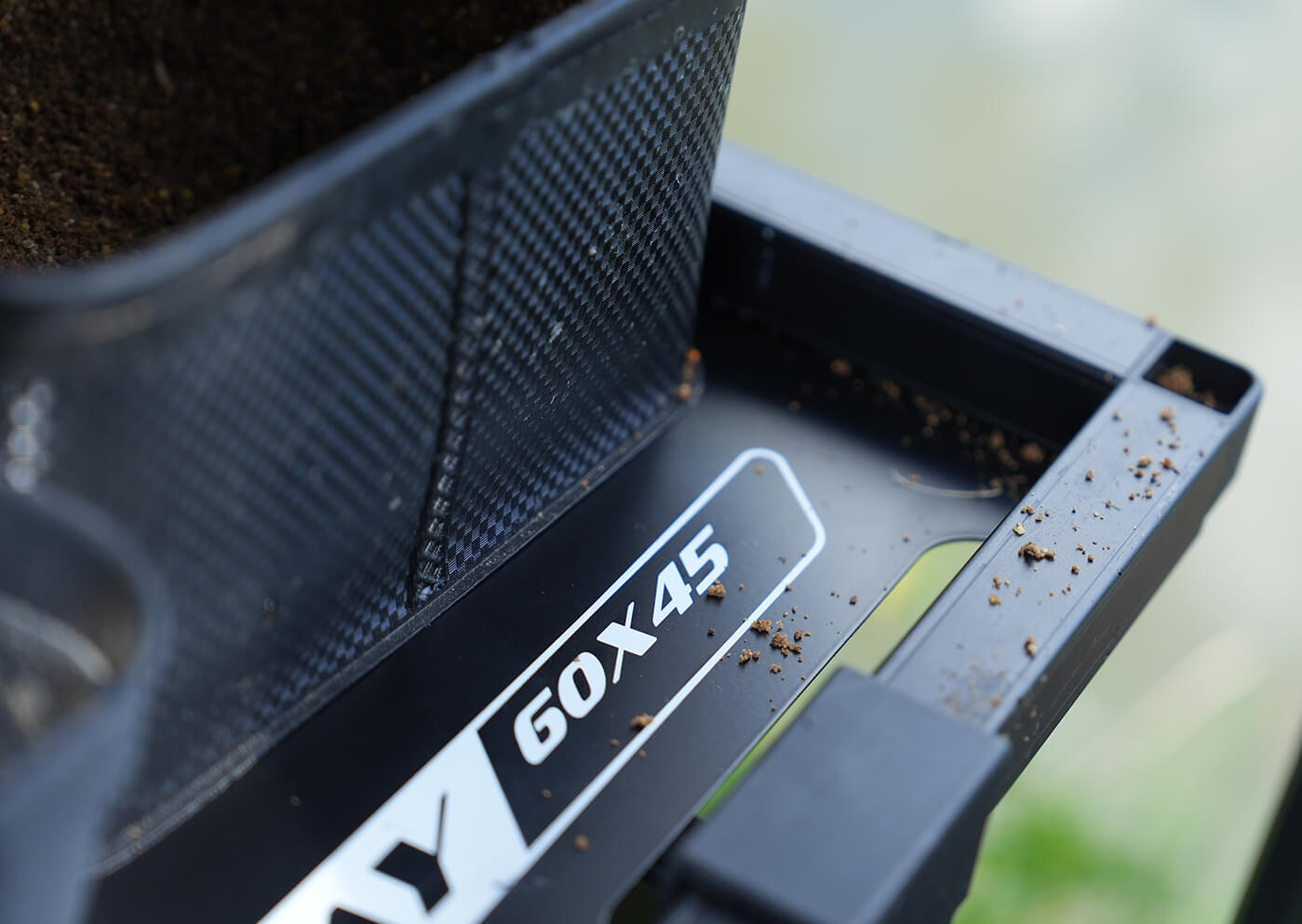 The Cresta Solith Hooded Side Tray is the ideal bait table in all conditions, with an adjustable hood to protect all your bait from sun and rain. At 60x45cm the internal dimensions will hold at least 6 large bait tubes with plenty of room left over. The mounting points have a double locking mechanism. The metal clip allows the block to be opened fully so that it can be wrapped around a leg from the side. A compact rotary knob with a non-marking clamping system ensures the block is fixed at the desired height. With the inserts provided, the opening of 36mm can be reduced to 30mm. The position of the attachment points can be adjusted to suit the distance between the legs of the seatbox. The two folding support arms make it completely self-supporting.
